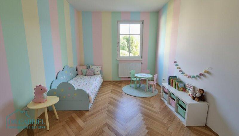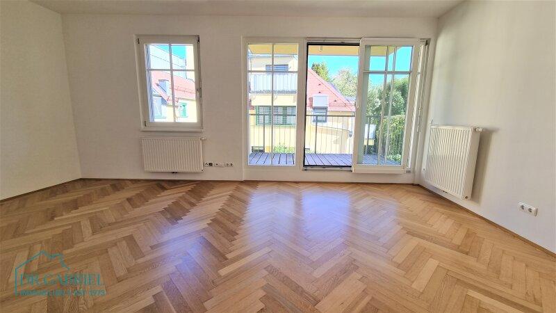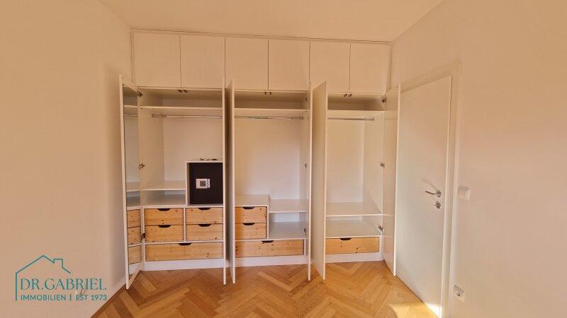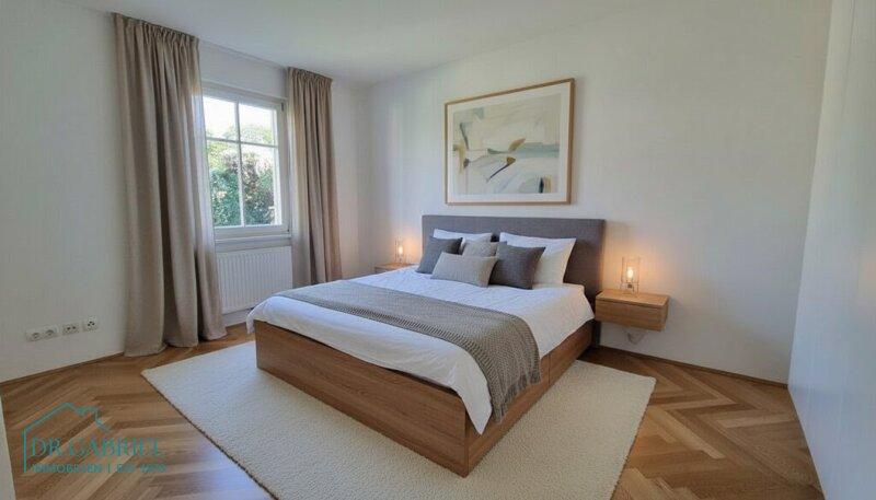 Hinweis/ Disclaimer: Die Möbel sind digital und mit KI erstellt worden. Die Wohnung wird unmöbliert vermietet, ausgenommen davon ist die Kücheneinrichtung samt Geräten, eine Schrankwand im Schlafzimmer, ein Wandverbau im Gang / Vorraum sowie Regaleinbauten im Abstellraum.