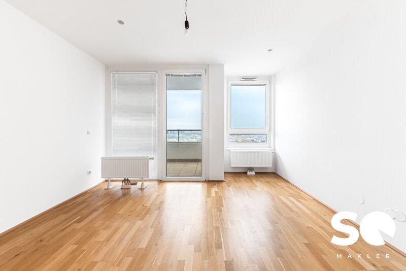 Diese lichtdurchflutete 2-Zimmer-Wohnung im 19. Obergeschoß vereint urbanes Wohnen mit einem außergewöhnlichen Lebensgefühl: Weitblick und modernes Design mitten in Wien.