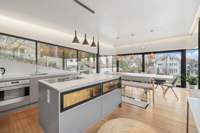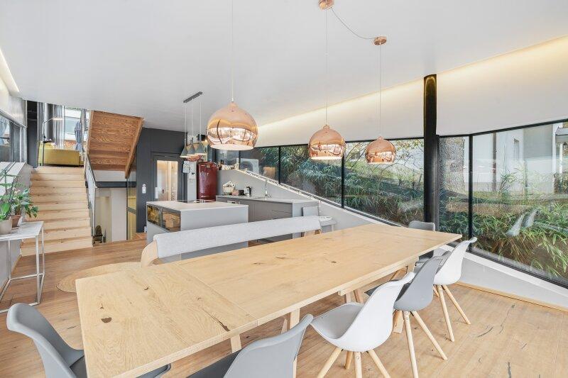 Dieses einzigartige Architektenhaus wurde mit Liebe zum Detail und höchsten Ansprüchen entworfen und 2017 fertiggestellt. Die schlanke vertikale Bauweise nutzt den Grundriss optimal aus und schafft eine beeindruckende Raumkomposition mit lichtdurchfluteten Ebenen, großzügigen Glasflächen und einem unverwechselbaren Wohnambiente.