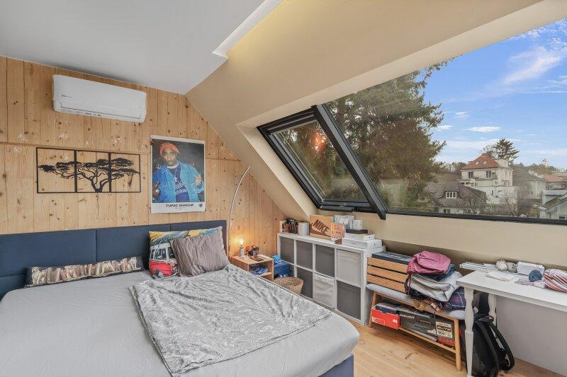 Die nächste Ebene beherbergt ein weiteres Schlafzimmer mit ca. 14 m² sowie einen zusätzlichen Liftausstieg.