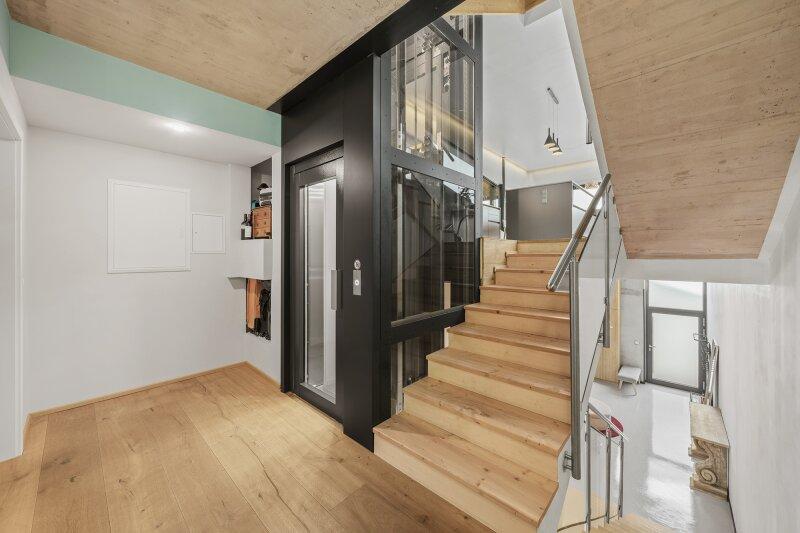 der Zugang zum Lift, der die zentralen Wohnebenen komfortabel verbindet