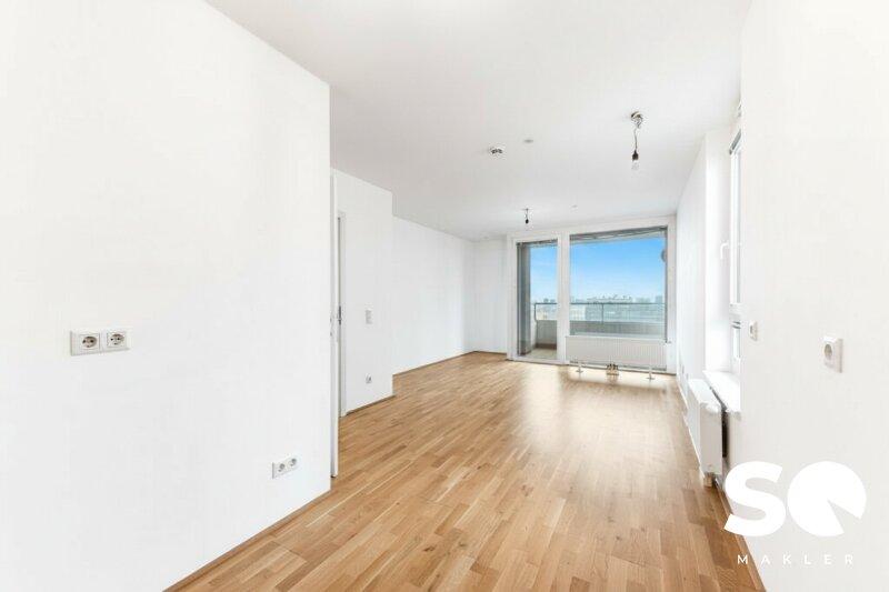 Diese lichtdurchflutete 2-Zimmer-Wohnung im 9. Obergeschoß vereint urbanes Wohnen mit einem außergewöhnlichen Lebensgefühl: Weitblick und modernes Design mitten in Wien.