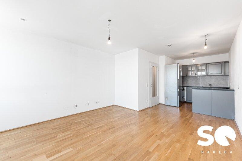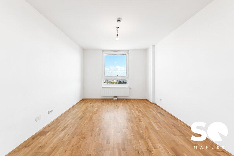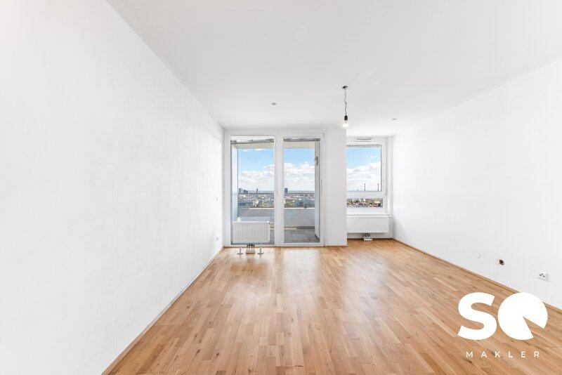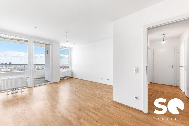 Diese lichtdurchflutete 2-Zimmer-Wohnung im 11. Obergeschoß vereint urbanes Wohnen mit einem außergewöhnlichen Lebensgefühl: Weitblick und modernes Design mitten in Wien.