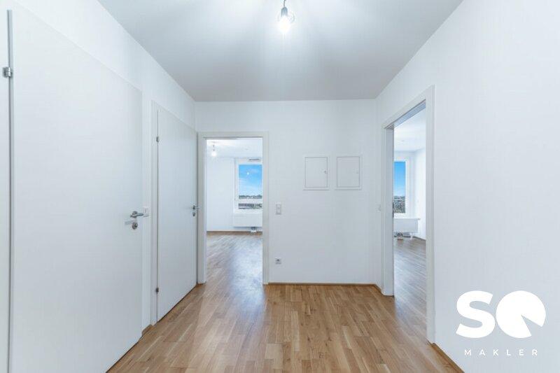 Diese lichtdurchflutete 2-Zimmer-Wohnung im 13. Obergeschoß vereint urbanes Wohnen mit einem außergewöhnlichen Lebensgefühl: Weitblick und modernes Design mitten in Wien.