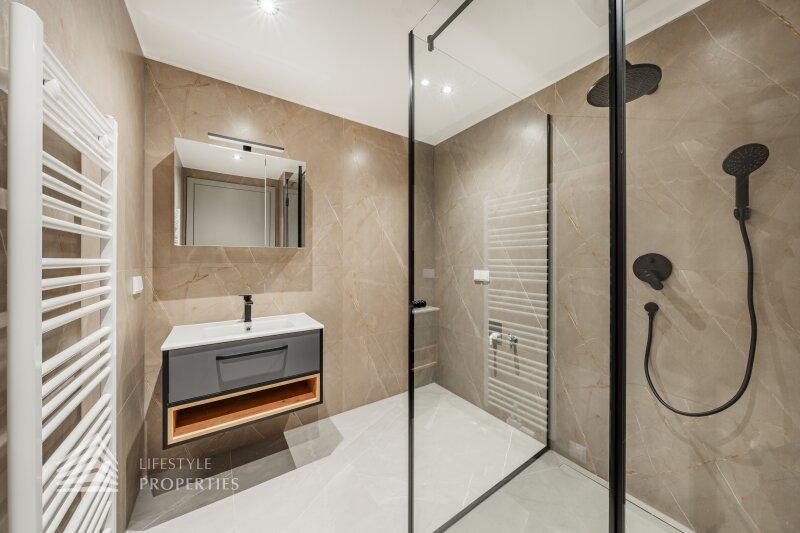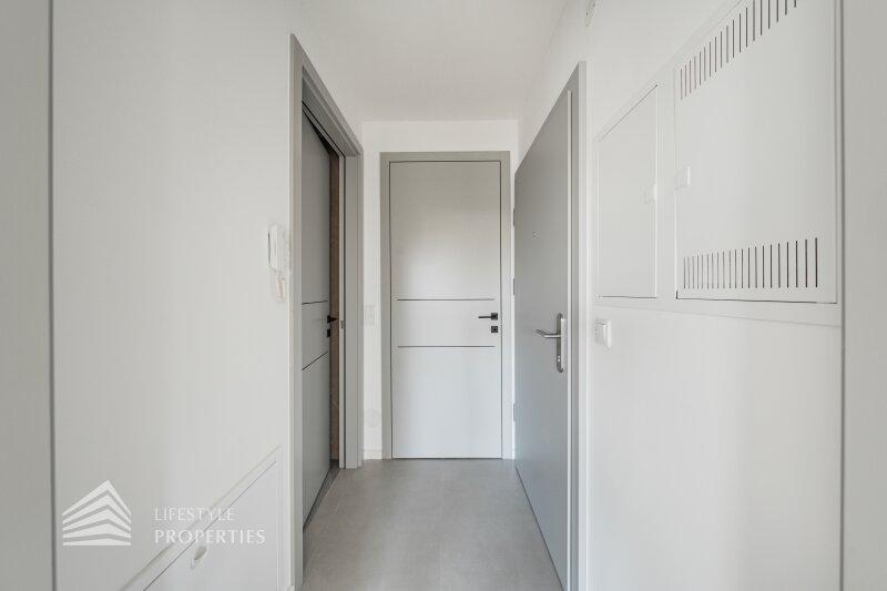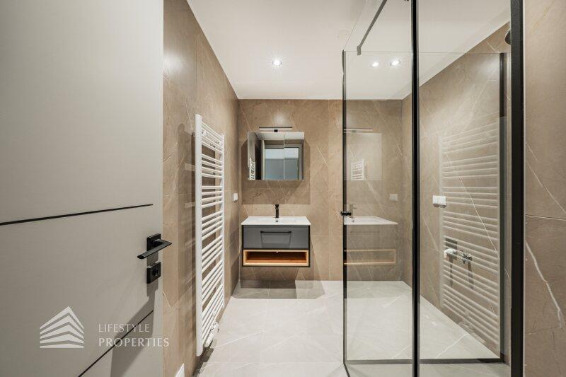 Der Vorraum führt Sie zu einem modernen Badezimmer mit Walk in Dusche und zu einem separaten WC. Diese Wohnung ist ideal für Singles, die modernen Komfort und ein durchdachtes Raumlayout schätzen, aber sie eignet sich auch hervorragend für Paare, die Wert auf ein gemütliches Zuhause legen.