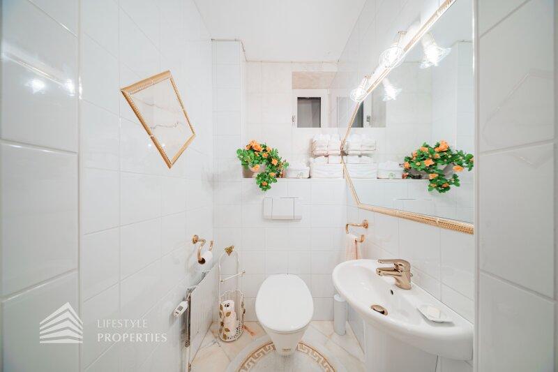 Des Weiteren verfügt der Teil des Hauses über einen Wohnkeller, wo sich das Gästezimmer befindet. Ausgestattet mit einer Dusche, einen Waschbecken und einer separaten Toilette. Nebenan erreicht man den Wirtschaftsraum und Technikraum.