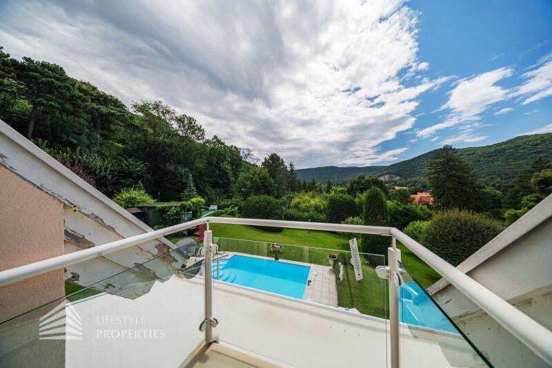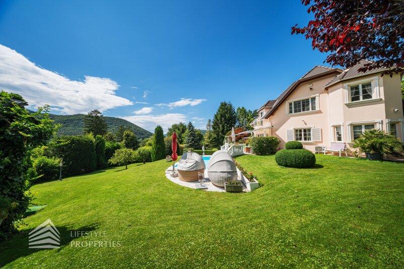 Zum Verkauf gelangt eine Villa mit ca. 151,28 m² Wohnfläche und einen ca. 3 450 m² großen Garten mit Swimmingpool in Bestlage in der Hinterbrühl.