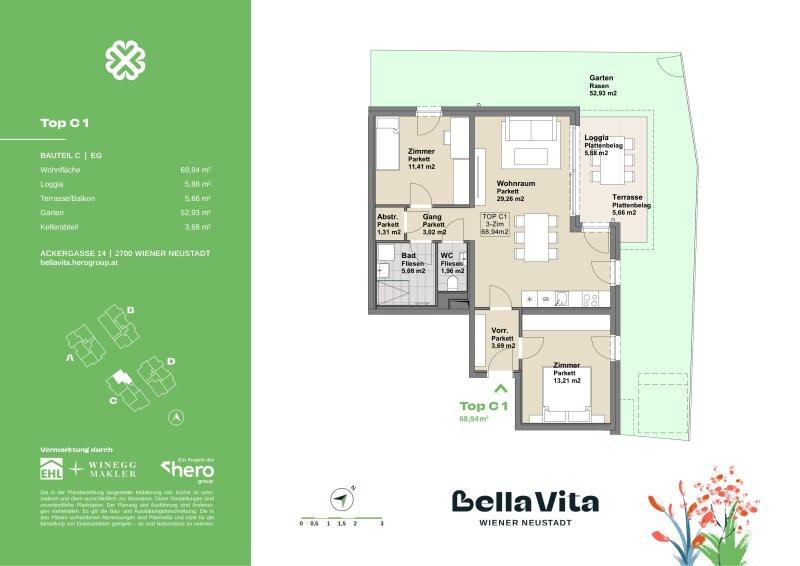 Das Wohnbauprojekt Bella Vita nahe des verzaubernden Wiener Neustädter Kanals steht für "schönes Leben" und das wird hier möglich. Im mediterranen Stil die Außen- und Allgemeinflächen: Gepflasterte Wege in Muschelkalk, Lauben und Schaukeln vermitteln Leichtigkeit, Gemütlichkeit und Wohlgefühl. Im Inneren überzeugende Raumaufteilung, stimmige Architektur, hochwertige Ausgestaltung. Und die Nachhaltigkeit stets im Blick, u.a. durch PV-Anlagen zur Energiegewinnung und einem Dachgeschoß in Holzhybridbauweise.