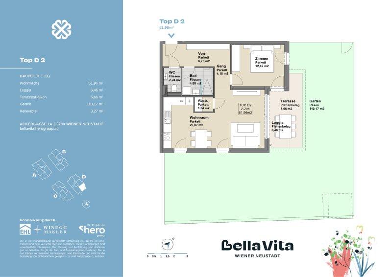 Das Wohnbauprojekt Bella Vita nahe des verzaubernden Wiener Neustädter Kanals steht für "schönes Leben" und das wird hier möglich. Im mediterranen Stil die Außen- und Allgemeinflächen: Gepflasterte Wege in Muschelkalk, Lauben und Schaukeln vermitteln Leichtigkeit, Gemütlichkeit und Wohlgefühl. Im Inneren überzeugende Raumaufteilung, stimmige Architektur, hochwertige Ausgestaltung. Und die Nachhaltigkeit stets im Blick, u.a. durch PV-Anlagen zur Energiegewinnung und einem Dachgeschoß in Holzhybridbauweise.