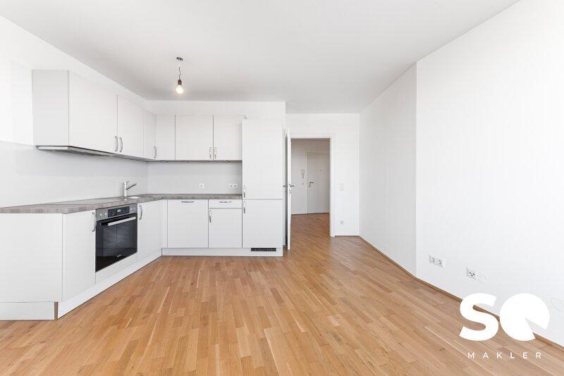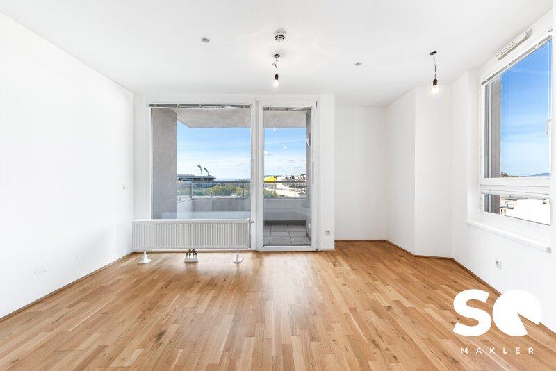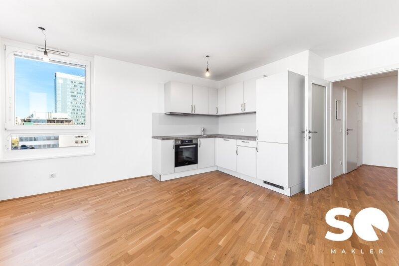 Diese lichtdurchflutete 2-Zimmer-Wohnung im 7. Obergeschoß vereint urbanes Wohnen mit einem außergewöhnlichen Lebensgefühl: Weitblick und modernes Design mitten in Wien.