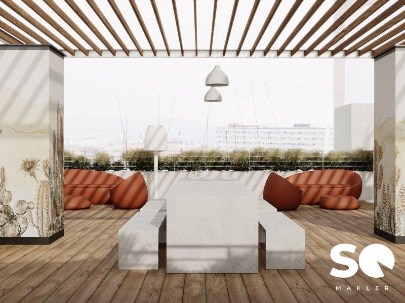 - Gemeinschaftsterrasse & Lounge im Ausmaß von ca. 350 m²
