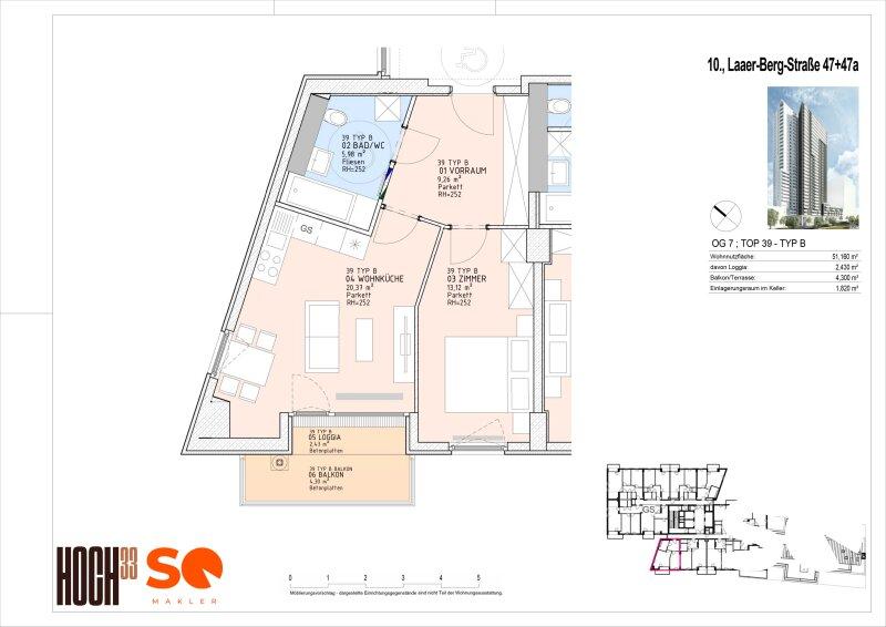 - Wohnfläche: ca. 48,73m² zzgl. Loggia mit ca. 2,43m²