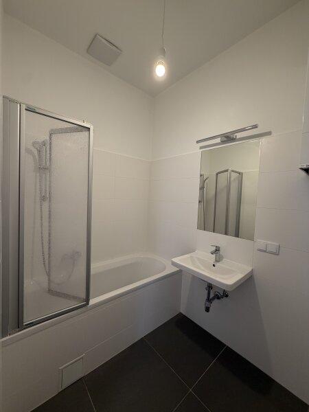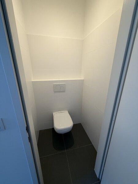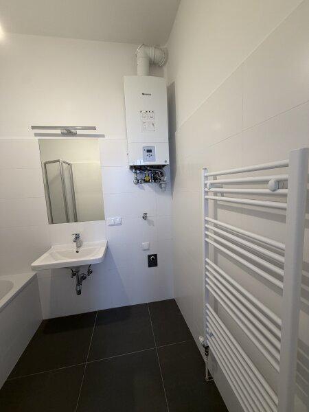 Das Badezimmer ist modern verfliest und mit einer Badewanne sowie einem Waschmaschinenanschluss ausgestattet. Die separate Toilette bietet zusätzlichen Komfort im Alltag.