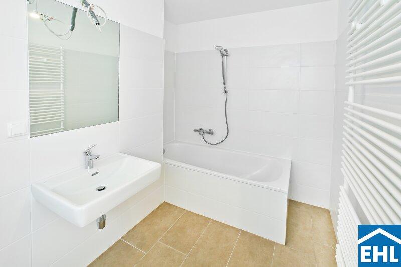 - Moderne Bäder mit Badewanne und Waschmaschinenanschluss.