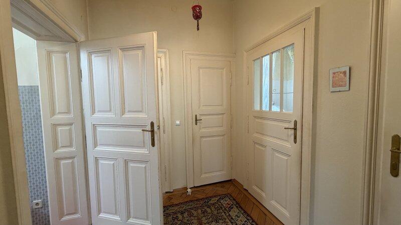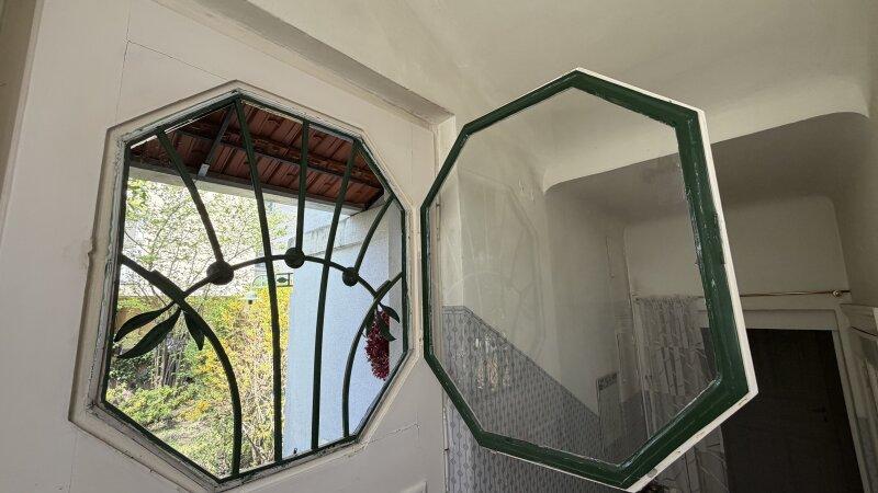 Der diskret auf der straßenabgewandten Seite gelegene Haupteingang ist über wenige Stufen erreichbar und führt in ein charmantes Stiegenhaus, das die einzelnen Wohnebenen miteinander verbindet.