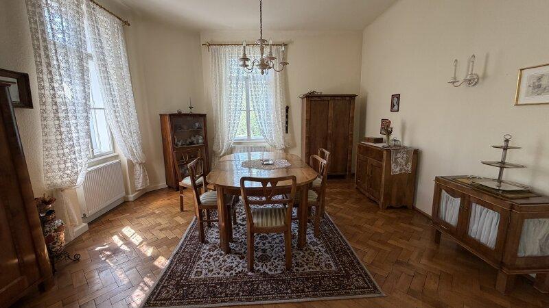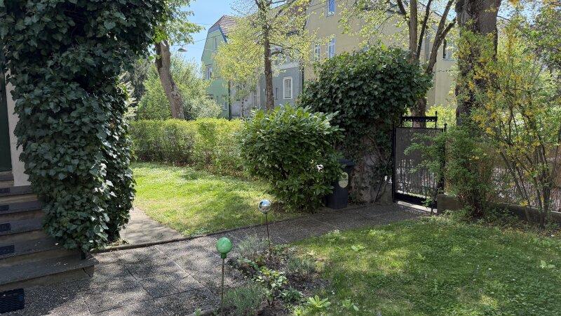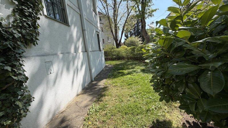 Der Außenbereich unterstreicht den repräsentativen Charakter der Liegenschaft: Vorgärten und ein historischer Zaun schaffen eine stilvolle Distanz zur Straße, während auf der Rückseite ein begrünter Garten mit gewachsenem Baumbestand, Freiflächen und einem dezent integrierten Pool zusätzlichen Freiraum bietet.