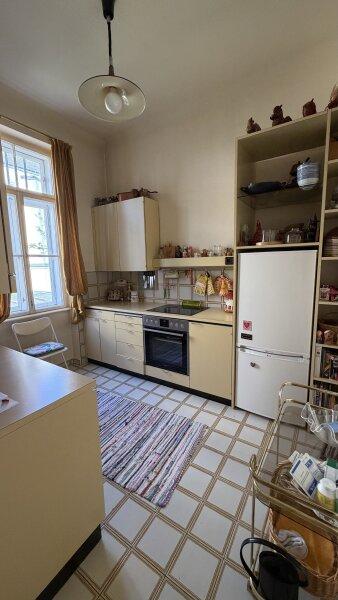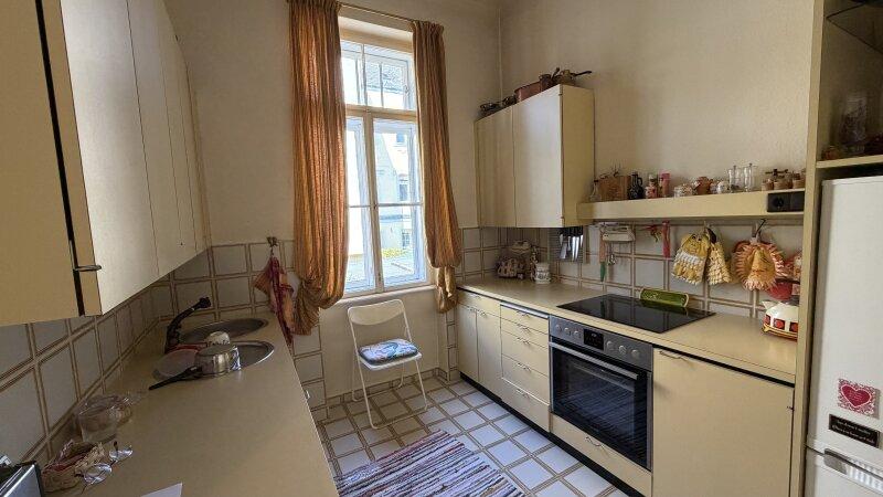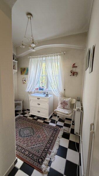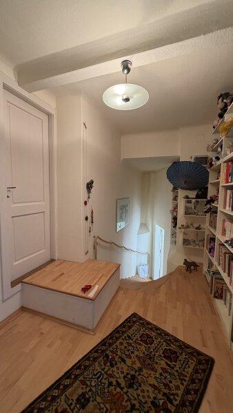 Hochparterre und Dachgeschoss wurden zuletzt als großzügige Einheit genutzt und umfassen mehrere Zimmer sowie Küche, Badezimmer und WC. Darüber erschließt sich ein weiterer Dachbereich mit Mansardenzimmer, sanitären Anschlüssen und Zugang zum Rohdachboden.