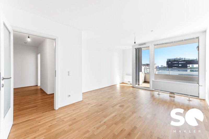 Diese lichtdurchflutete 2-Zimmer-Wohnung im 6. Obergeschoß vereint urbanes Wohnen mit einem außergewöhnlichen Lebensgefühl: Weitblick und modernes Design mitten in Wien.
