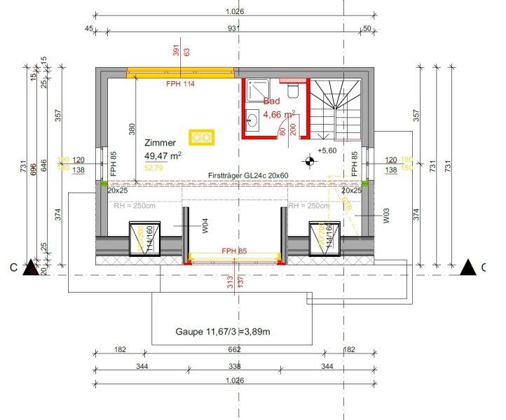 - Großzügiges Studio- bzw. Masterzimmer mit ca. 49 m²