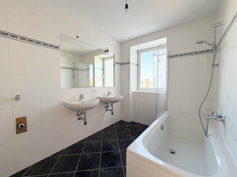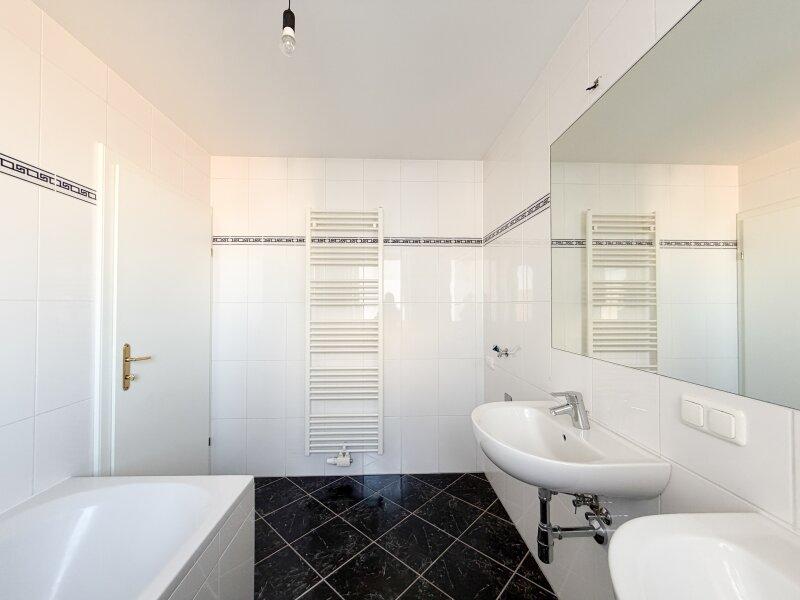 - Badezimmer mit Fenster, Doppelwaschbecken, Badewanne & Waschmaschinenanschluss