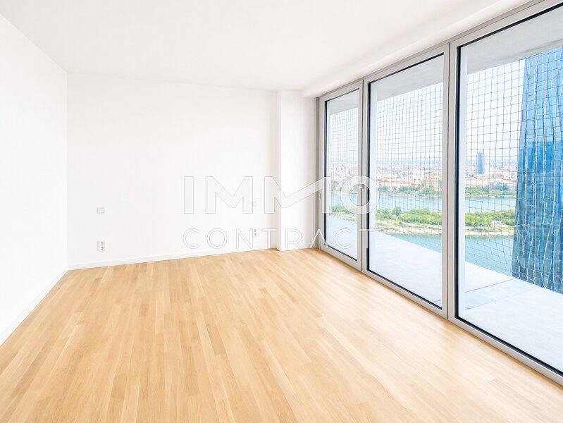 Diese außergewöhnliche 3-Zimmer-Eckwohnung im DC2 Tower vereint großzügiges Raumgefühl mit spektakulärer Weitsicht. Durch die Ecklage profitieren Sie von zwei Außenflächen und einem einzigartigen Panorama mit Blick auf Wien, sowie den Kahlenberg, Leopoldsberg und die Donau. Die westliche Ausrichtung sorgt für lichtdurchflutete Räume und eindrucksvolle Sonnenuntergänge über der Skyline. Die beiden Loggien eine ca. 25 m² große Hauptloggia und eine zweite ca. 15 m² große Loggia erweitern den Wohnraum ins Freie und schaffen private Rückzugsorte über den Dächern der Stadt.