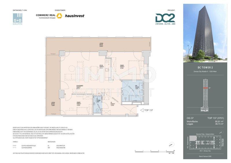 Der DC2 Tower zählt mit 52 Stockwerken und 314 hochwertigen Wohnungen ab dem 32. Obergeschoß zu den spektakulärsten Wohnprojekten des Landes. Die Wohnungsgrößen von ca. 30 bis 260 Quadratmetern bieten ein bewusst vielfältiges Angebot von intelligent geplanten Einzimmerstudios über komfortable Familienwohnungen bis hin zu großzügigen Fünfzimmer-Maisonettewohnungen. Jede Einheit überzeugt durch durchdachte Grundrisse, hohe Wohnqualität und großzügige Fensterflächen, die den Blick nach außen inszenieren und die Stadt Teil des Wohnraums werden lassen. Loggien, Balkone und Freiräume erweitern den Wohnbereich und machen die beeindruckende Höhe unmittelbar erlebbar.