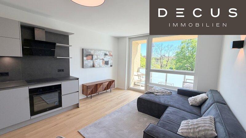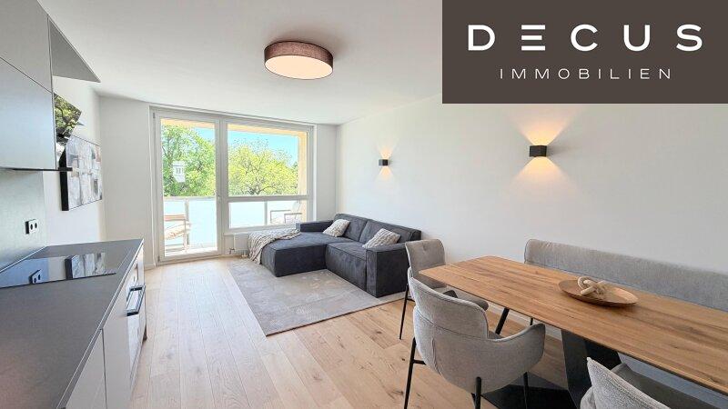 Die Designerküche ist voll ausgestattet inklusive Induktionsherd und hochwertigen Geräten und fügt sich harmonisch in den offenen Wohnbereich ein. Wohnzimmer sowie ein Schlafzimmer sind bereits stilvoll möbliert; im Kaufpreis inkludiert sind die Küche und Badmöbel, die übrige Einrichtung ist nicht Bestandteil des Kaufpreises.