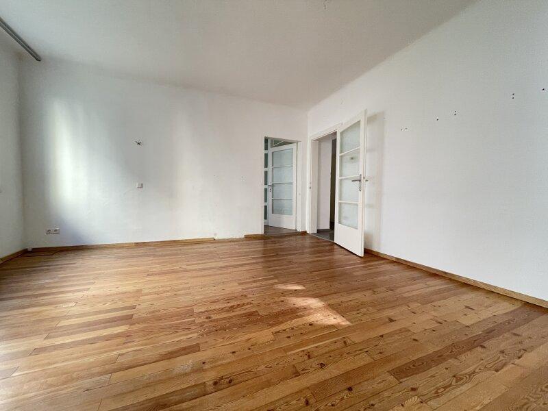 Die Wohnung besticht durch einen zentralen Vorraum, von dem aus alle Haupträume separat begehbar sind. Die Küche wurde vor wenigen Jahren modernisiert und ist in gutem Zustand. Vom großzügigen Wohnraum führen zwei kleinere Zimmer ab, die sich ideal als Kinderzimmer, Gästezimmer oder Homeoffice nutzen lassen. Insgesamt bietet die Wohnung vier separat nutzbare Räume sowie Küche, Bad und WC eine seltene Qualität in dieser Größenordnung.