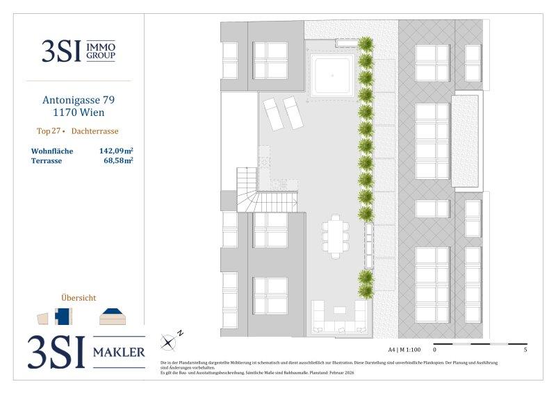 Diese traumhafte Penthousewohnung ist ein echtes Juwel und verspricht Wohnen auf höchstem Niveau. Der weitläufige Wohnbereich, durchflutet von natürlichem Licht, öffnet sich direkt zu einer herrlichen Terrasse ein Ort, an dem Sie den Alltag hinter sich lassen und die Seele baumeln lassen können. Die vier eleganten Schlafzimmer, jedes mit einem eigenen luxuriösen Badezimmer ausgestattet, bieten Raum für Rückzug und Erholung. Die südwestliche Ausrichtung sorgt für eine warme, einladende Atmosphäre und fängt die schönsten Lichtmomente des Tages ein. Absolutes Highlight ist die atemberaubende Dachterrasse, die Ihnen einen unvergleichlichen Blick schenkt und mit vorbereiteten Anschlüssen für einen Whirlpool perfekt für unvergessliche Abende unter freiem Himmel ist. Dieses Zuhause wird Sie begeistern und Ihr Herz höherschlagen lassen.