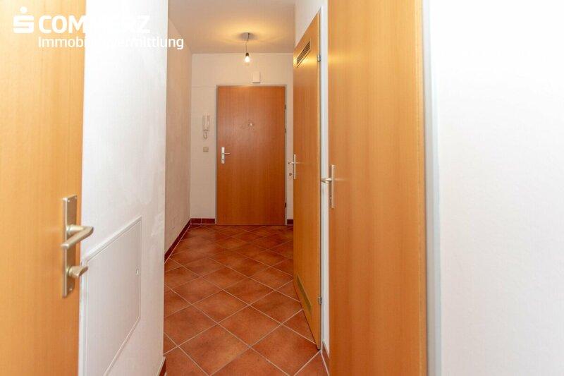 Die Wohnräume sind mit Parkettböden ausgestattet und schaffen eine warme, angenehme Wohnatmosphäre. Badezimmer und WC sind in klassischem Weiß verfliest und gepflegt ausgeführt. Vorraum, Kochnische und Abstellräume überzeugen mit Fliesen im Terracotta-Stil, die einen dezenten mediterranen Akzent setzen.