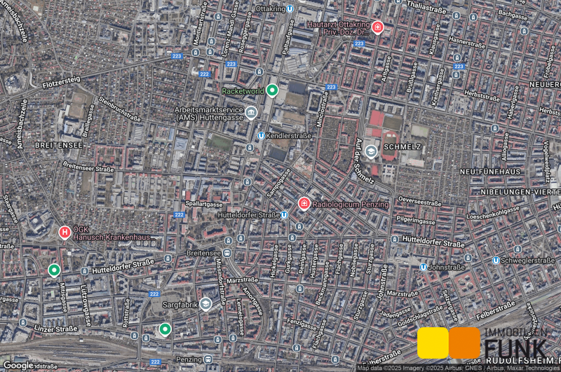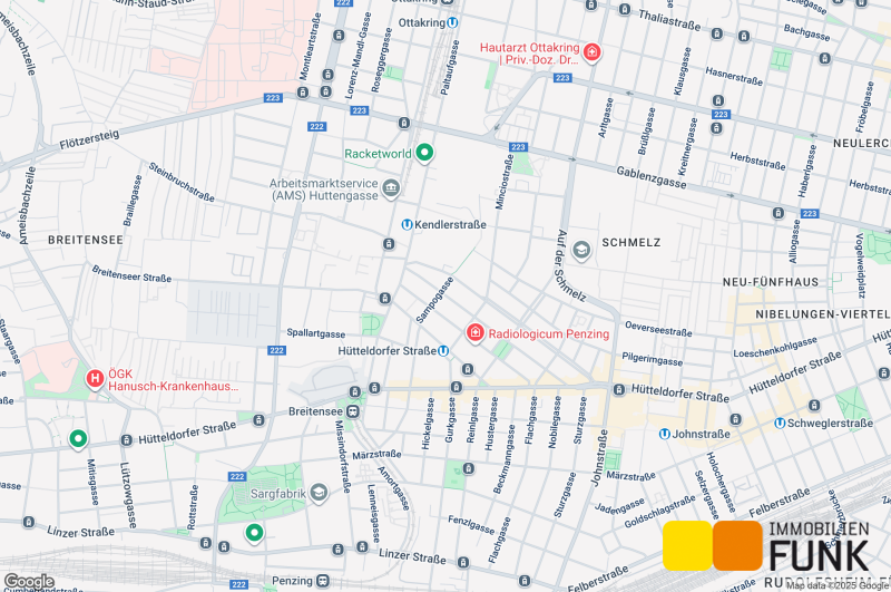 Die Liegenschaft befindet sich im 14. Wiener Gemeindebezirk in der Sampogasse, zwischen Hütteldorfer Straße und Kendlerstraße. In unmittelbarer Umgebung befinden sich zahlreiche Einkaufmöglichkeiten für den täglichen Bedarf. Die Anbindung an den öffentlichen Verkehr ist ausgezeichnet: die Haltestellen der Straßenbahnlinie 49 und 10 sowie die der Autobuslinien 10A, 12A und 63A liegen in Gehweite. Die U-Bahn-Station Kendlerstraße (Linie U3) ist in etwa drei Minuten zu Fuß erreicht. Die Fahrzeit in die Wiener Innenstadt beträgt rund 12 Minuten.