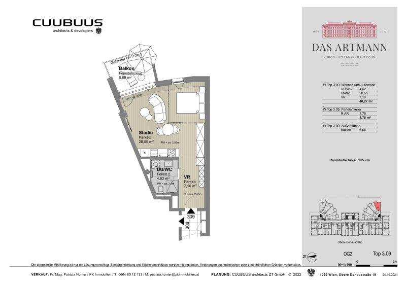 Discover this attractive 1-room apartment in the heart of 1020 Vienna! This 41 m² apartment is ready for first-time occupancy and features high-quality parquet flooring and underfloor heating. An architecturally sophisticated glass room divider separates the bedroom from the living room and creates a feeling of spaciousness. The light-filled living room offers direct access to a cozy balcony.