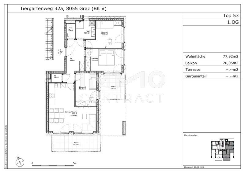 Erstbezug 01.10.2026: Geförderte 4 Zimmer Wohnung mit 2 Balkone - Tiergartenweg 32a - Top 53 A - Objektnr. 5660134