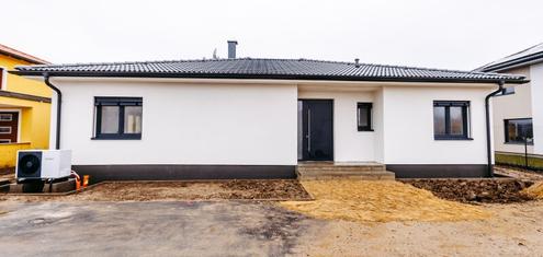 Widmung: Bauland Wohngebiet Bungalow in Holzriegelbauweise Grundstücksfläche: 777 m2 Wohnnutzfläche: 124,18 m2 Heizung: Luft-Wasser-Wärmepumpe Warmwasserbereitung: Beheizter Boiler mit 500 Liter Fassungsvermögen (im Technikraum aufgestellt) Fenster: Kunstoff mit Isolierverglasung Fassade: 20 cm Wärmedämmverbundsystem EPS-F-Platten Zum Detail
